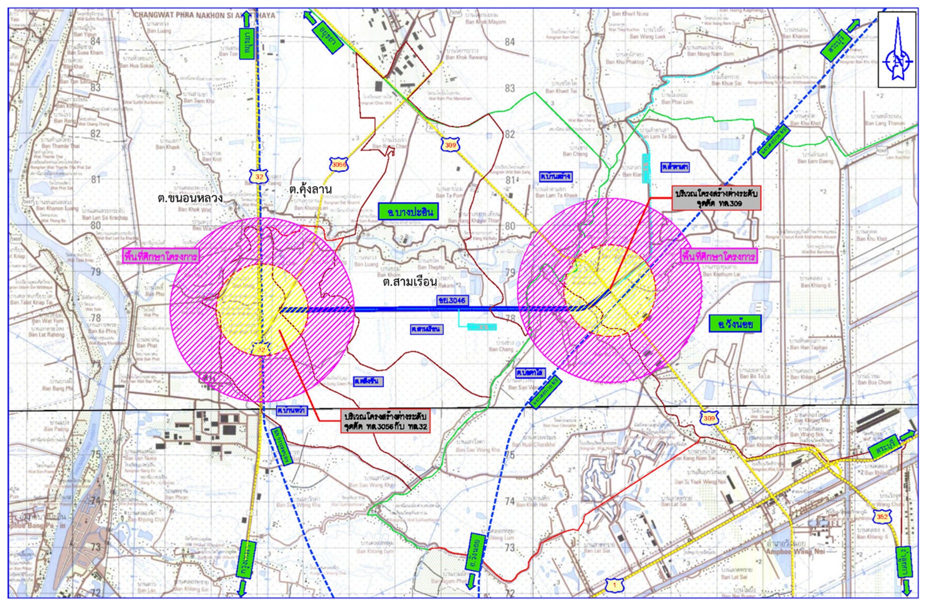 โครงการสำรวจออกแบบโครงสร้างต่างระดับบริเวณจุดตัด ทล.309 ทล.3056 และ ทล.32 กับถนนสาย อย.3046 อ.วังน้อย, บางปะอิน จ.พระนครศรีอยุธยา ตั้งอยู่บริเวณพื้นที่อำเภอวังน้อยและอำเภอบางปะอิน จังหวัดพระนครศรีอยุธยา ดังแสดงในรูปที่ 1